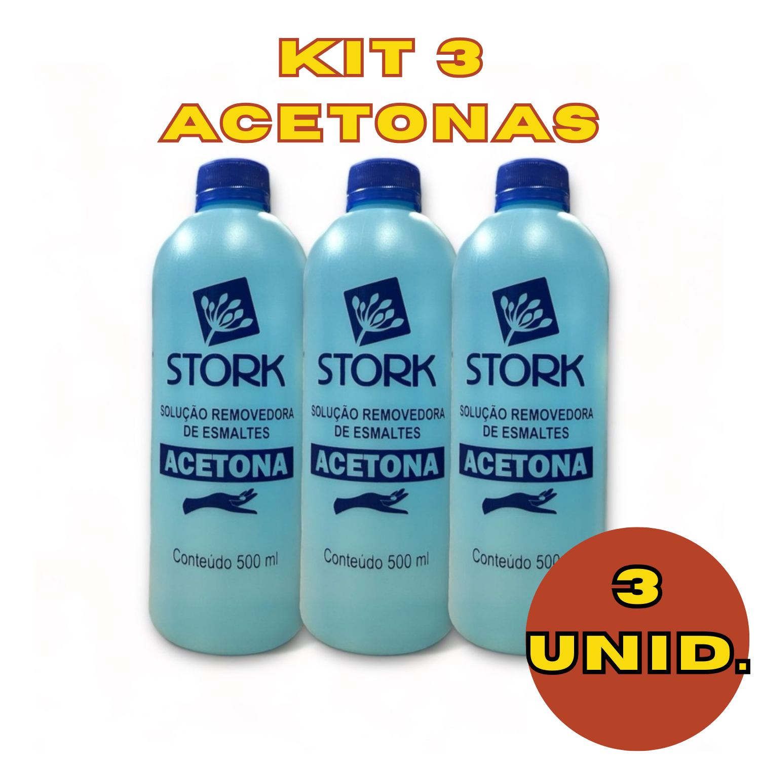 Kit C/3 Removedor De Esmaltes Com Acetona Stork 500ml