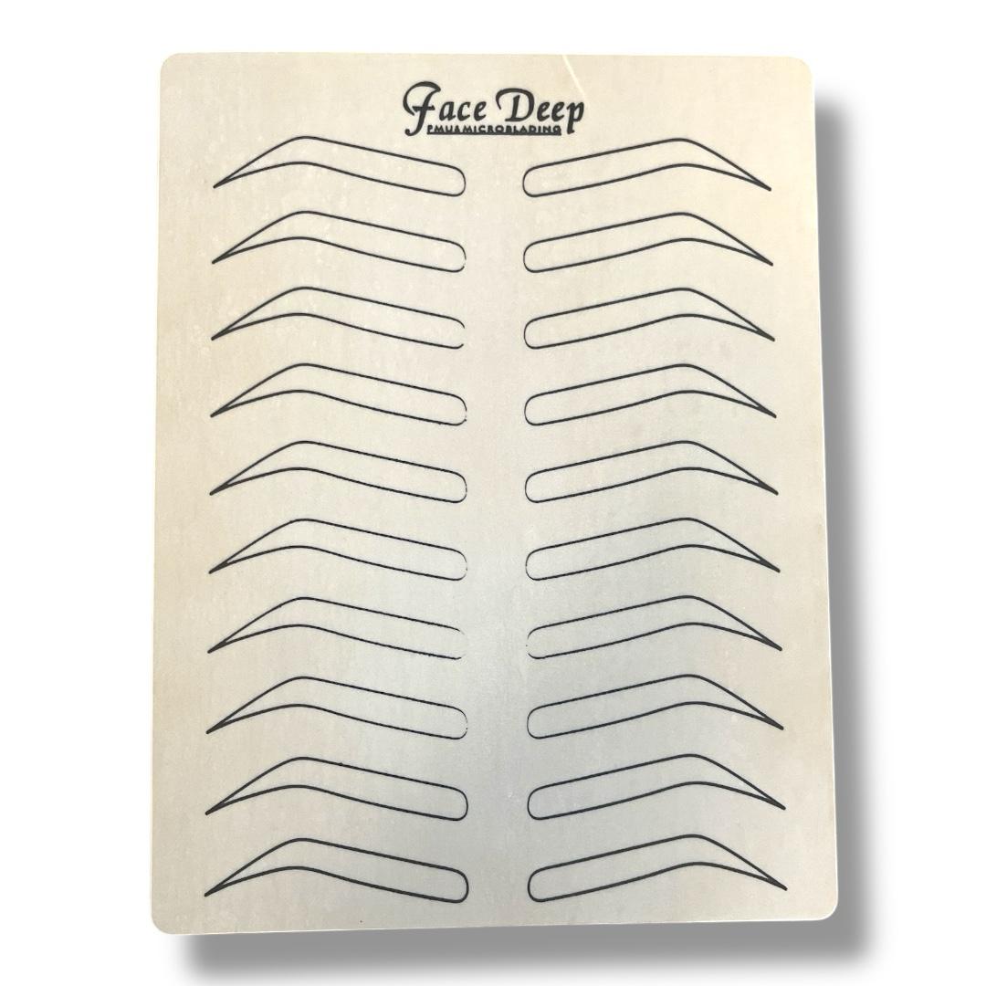 Pele sintética para treinamento de micropigmentação, com o desenho do contorno da sobrancelha. Perfeito para iniciantes e profissionais que desejam testar lâminas e agulhas novas, treinar o peso da mão ou se adaptar a um novo Tebori ou Dermógrafo.