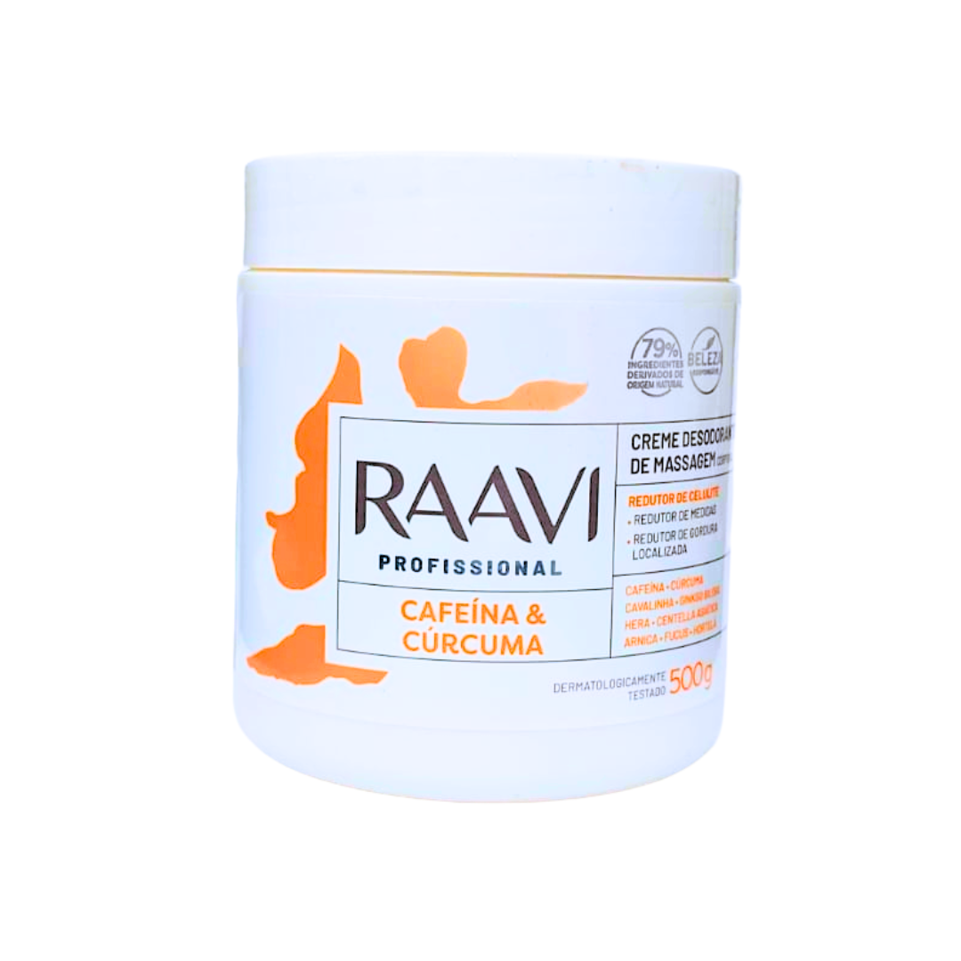 Potencialize seus resultados com o Creme de Massagem Raavi Cafeína e Cúrcuma. Desenvolvido especialmente para auxiliar em massagens modeladoras e redutoras, este creme atua diretamente na melhora da textura da pele, combatendo a flacidez e auxiliando na redução de medidas de forma eficaz e profissional.