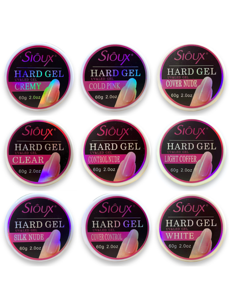 O Hard Gel Sioux é um gel com secagem ultra rápida que garante resultados de maior rigidez após a cura (menos flexível). Possui alta resistência e aderência, não escorre, sendo ideal o uso, apenas na borda livre da unha, especificamente na primeira camada de construção. Pouca sensação de queima. Não abra a curvatura.